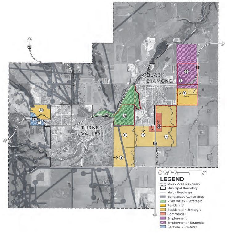 The Joint Growth Strategy outlines a long-term growth concept for the Towns of Black Diamond and Turner Valley, and identifies lands for residential, commercial, and industrial uses. The Economic Development Plan provides a framework for increasing the opportunity for business growth and development that builds on the existing strengths and values of the Town and surrounding area. These foundational planning documents for the Town identify the need for the Town to annex land in order to grow in a thoughtful, intentional manner.